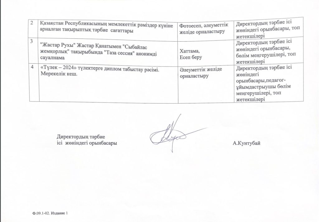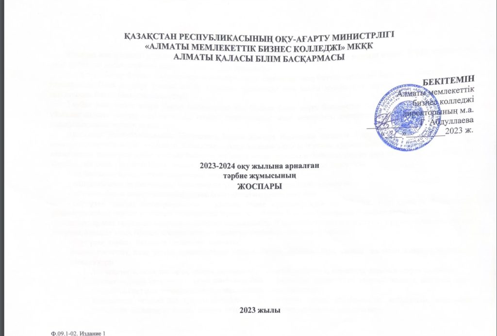 План воспитательной работы Алматинского государственного бизнес колледжа на 2023-2024 учебный год
